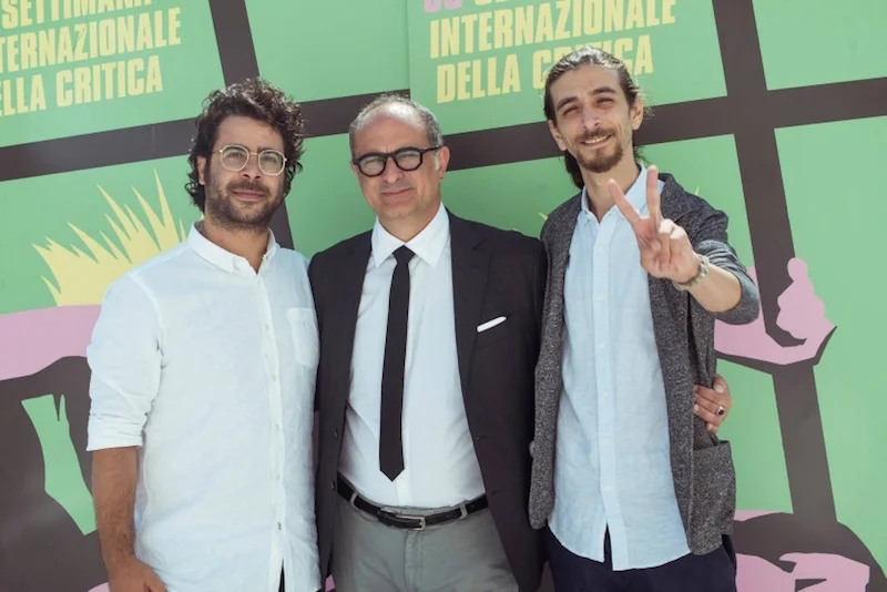 Giona A. Nazzaro flanked by the filmmakers of ‘Still Recording’ Ghiath Ayoub and Saeed Al Batal