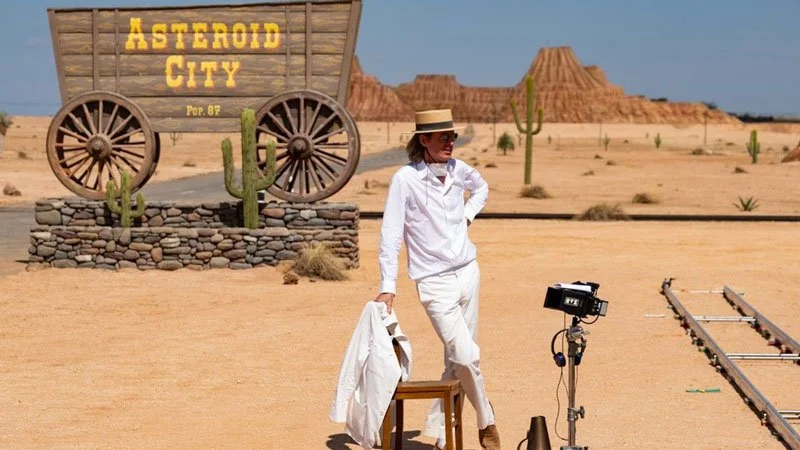 For Asteroid City, the look is all 1950s American desert style, complete with pastel colors and Wim Wenders’ Euro take on no name town USA. His collection of photographs titled Written in the West, which he compiled during his preparation for shooting his 1984 road movie Paris, Texas.