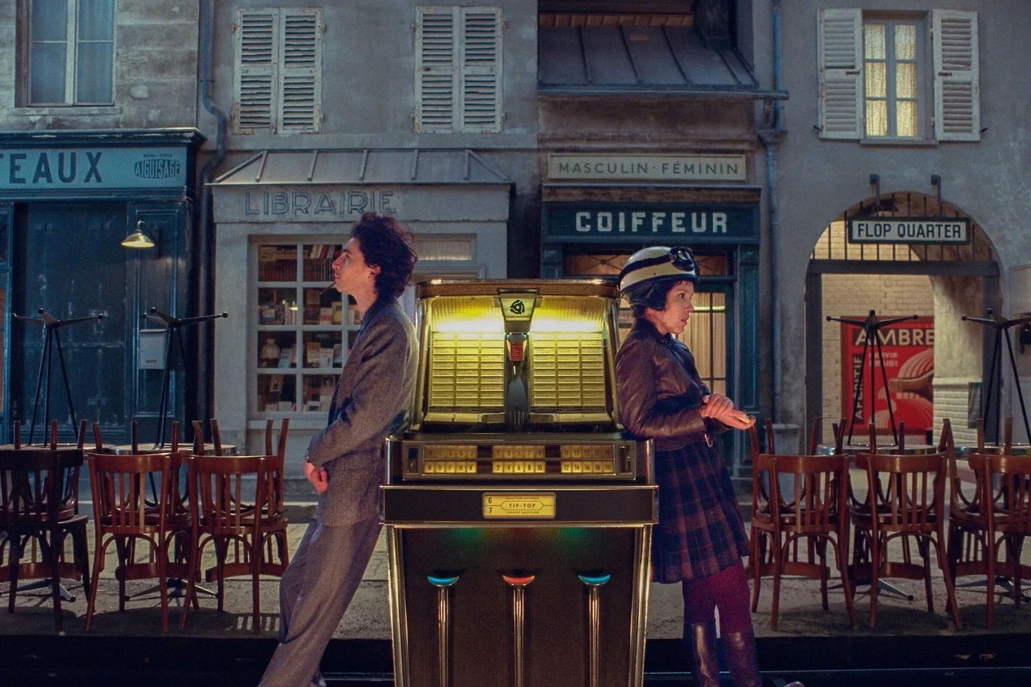 Timothée Chalamet and Lyna Khoudri on the set of Anderson’s ‘The French Dispatch’