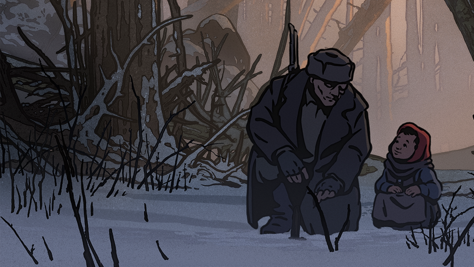 So what makes The Most Precious of Cargoes so deeply moving? The film is adapted from Jean-Claude Grumberg’s 2019 short novel by the same name and features a script co-written by Hazanavicius and the French playwright. It tells the story of a woodcutter’s wife who one day, finds a crying baby in the snow. The little girl was thrown out of a train by her father, a man who, along with his family, is on his way to a concentration camp. Through quiet hints, without mentioning events or places and employing breathtaking animation based on Hazanavicius’ own drawings, the film allows us to understand all the sides of those who lived at the time of the Holocaust, from those who were persecuted, to those who just stood by and watched. Because the worst evil perpetrated in this world is the one done by those who don’t move a finger to save their fellow humans, or point their finger and accuse without a true knowledge of the ongoing tragedy. Sound familiar? Well yes, so perhaps that is why most distributors in the US have not dared to touch this story, made by a Jewish filmmaker, which actually explains so many world conflicts and the ability of evil leaders to always get their way. Unquestioned.